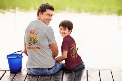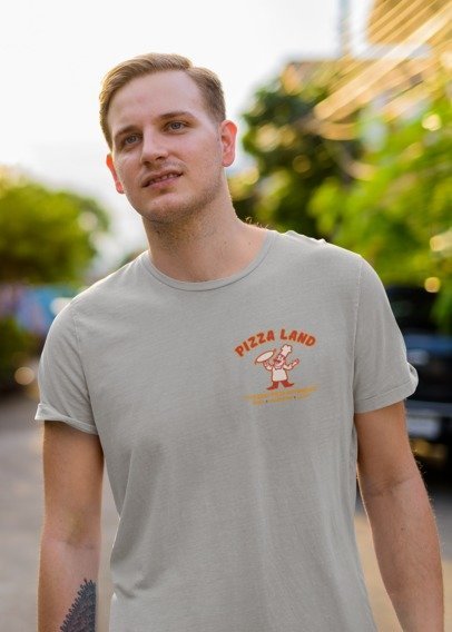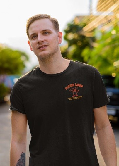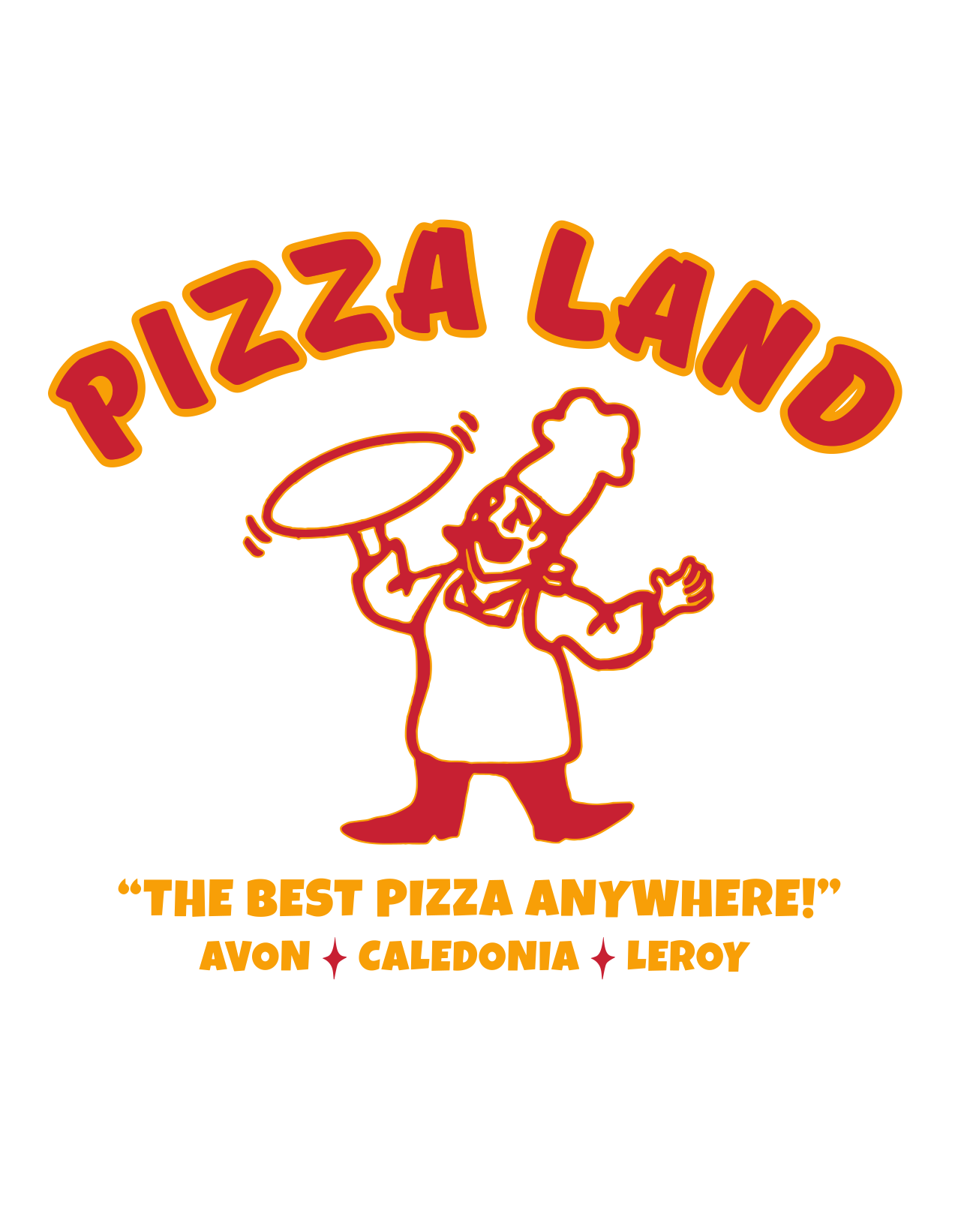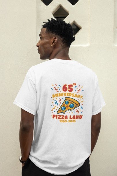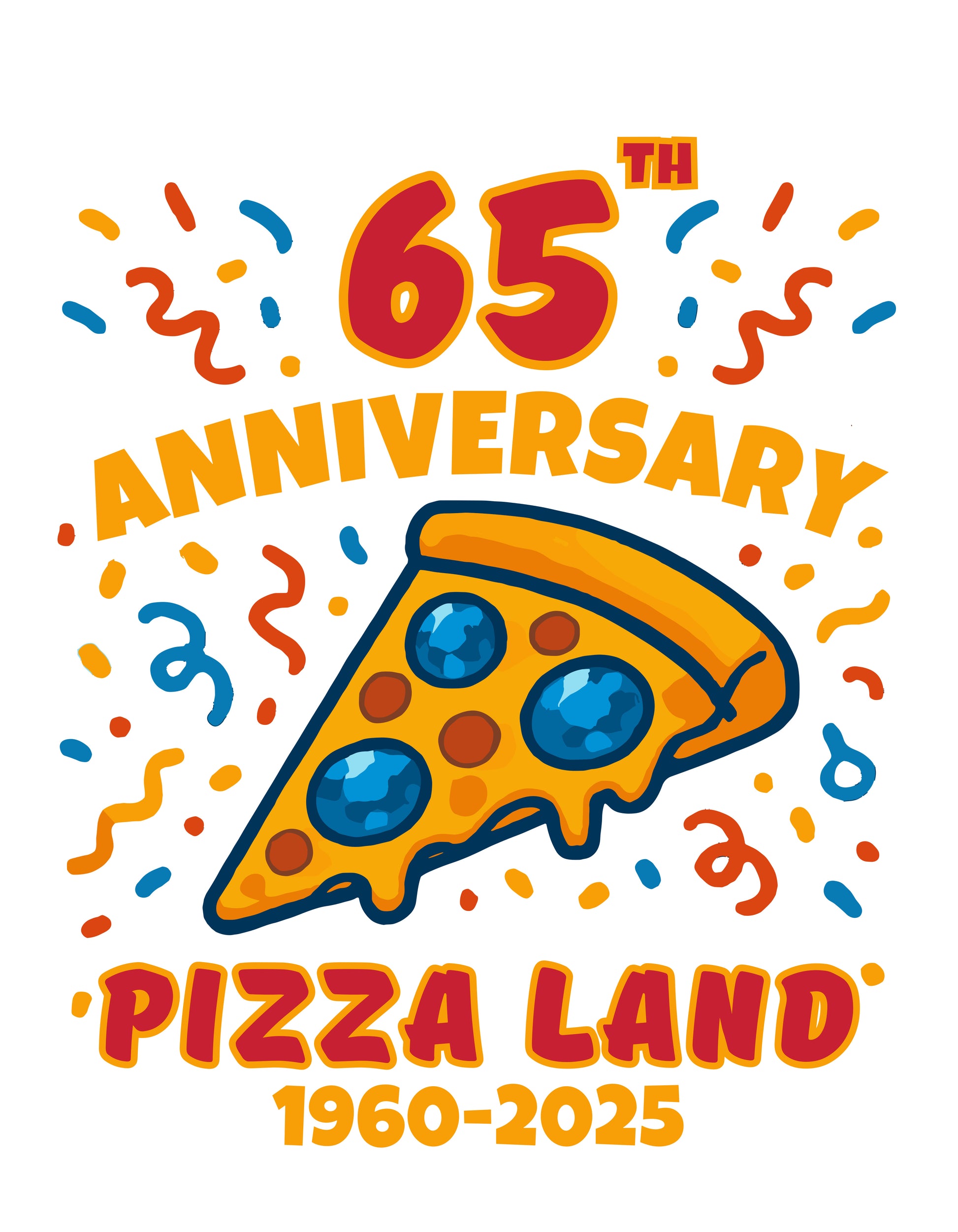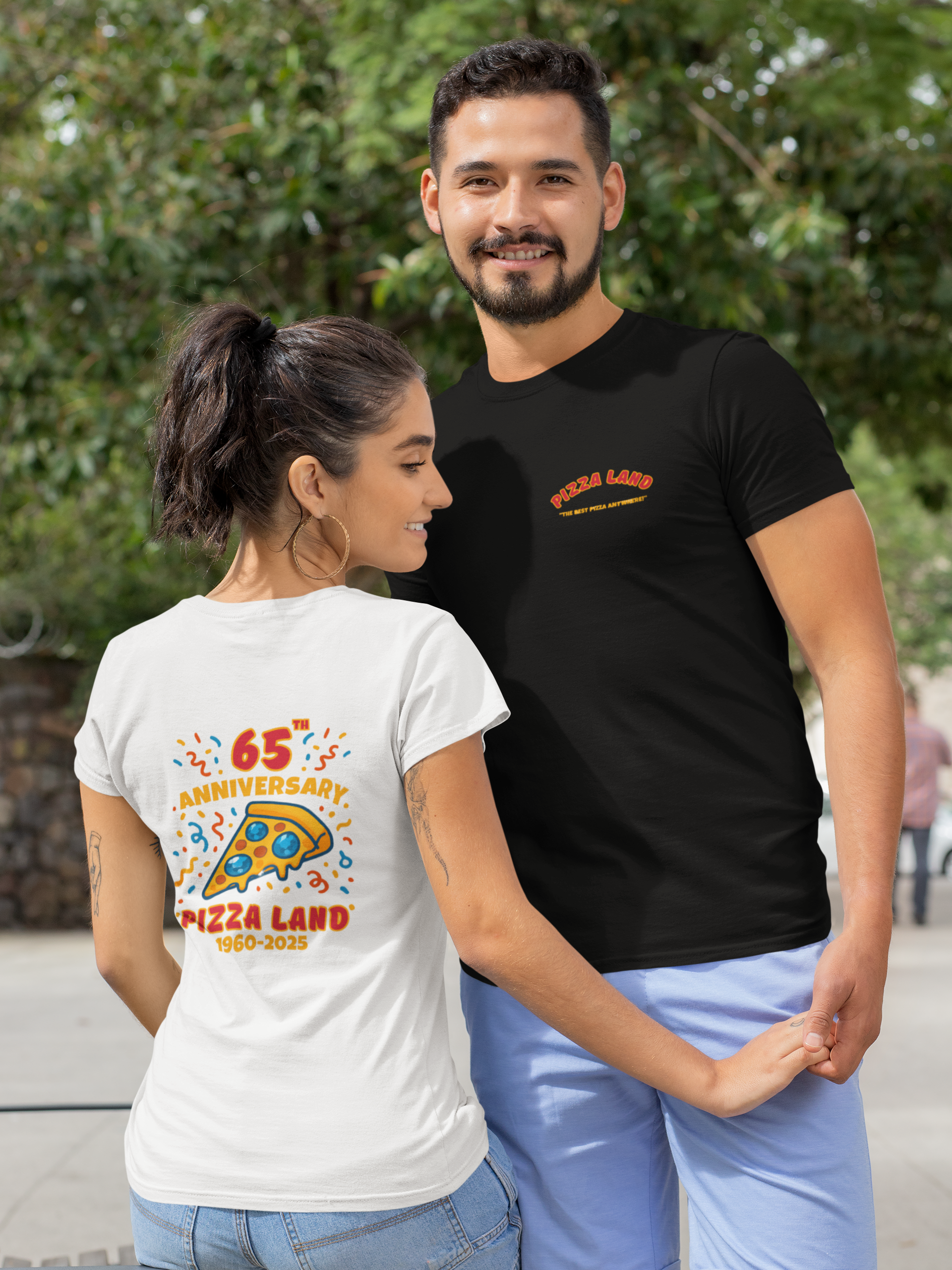 limited! unisex short sleeve t-shirt double side FRONT- Pizza Land writing small upper chest BACK- 65 anniversary logo