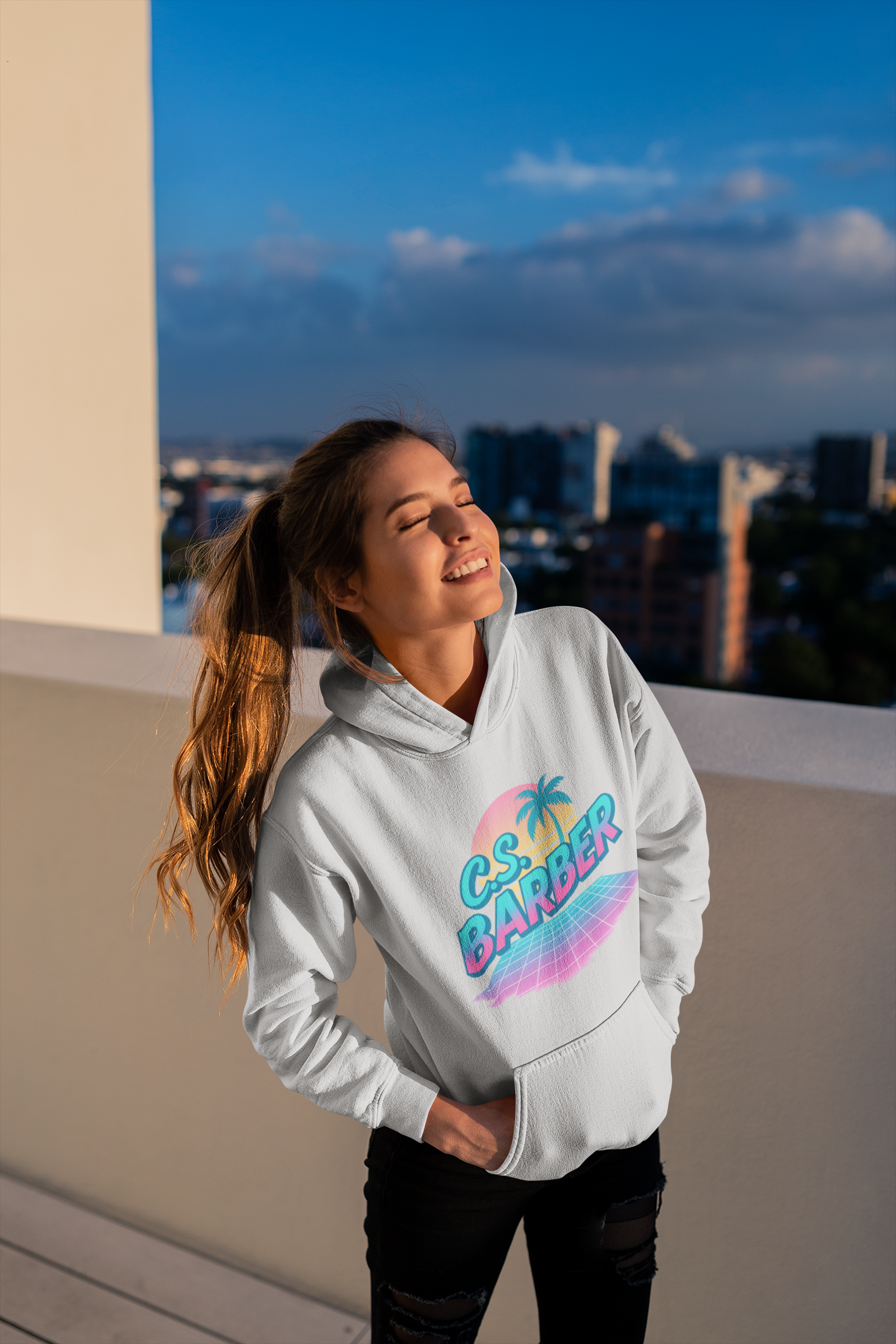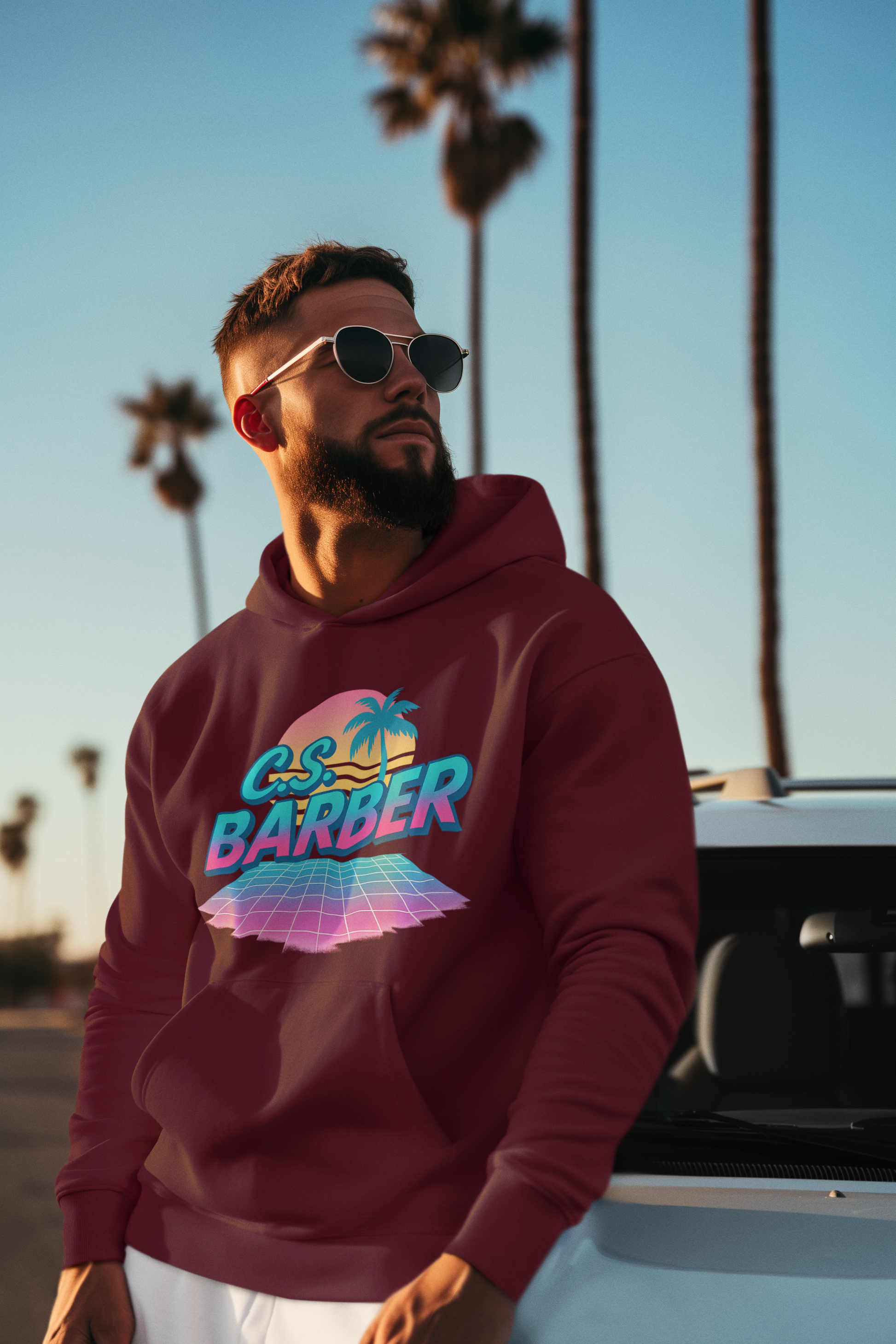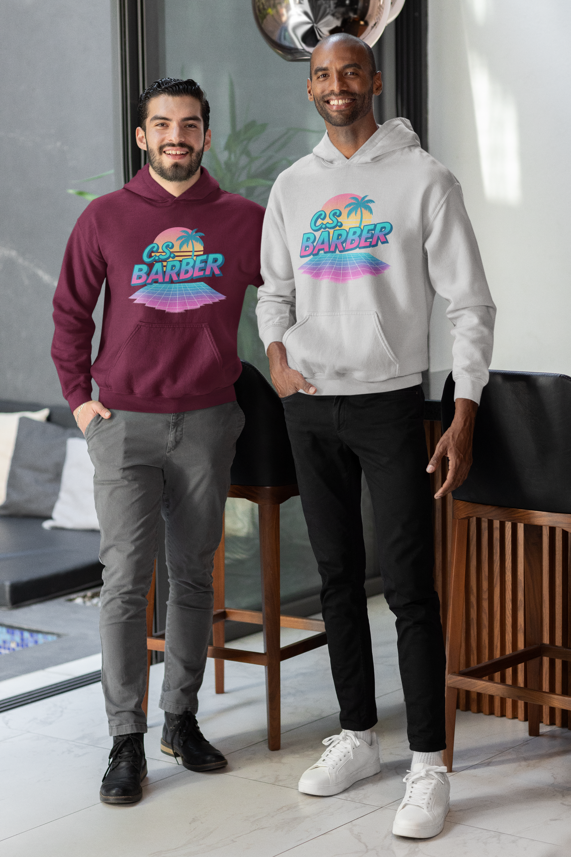 unisex hoodie one sided. FRONT- retro c.s. barber