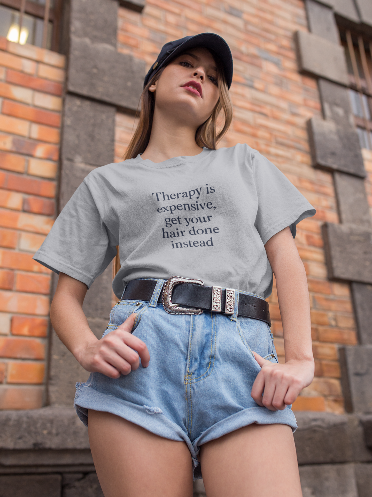 unisex short sleeve t-shirt double side FRONT- therapy logo BACK- classic logo